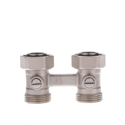 VALVOLA A SFERA DOPPIA AD ANGOLO CON BY-PASS IN OTTONE